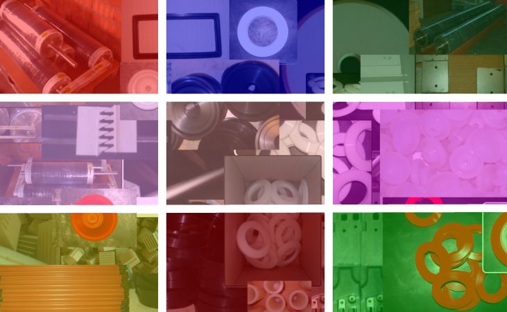 vulkollan, silicone, Viton, EPDM, neoprene, gomma naturale (para), gomme antiolio e antiabrasive. La nostra specializzazione: esecuzioni specifiche a disegno del cliente; rivestimento ruote e rulli; trafilati ed estrusi; stampaggio articoli tecnici. |